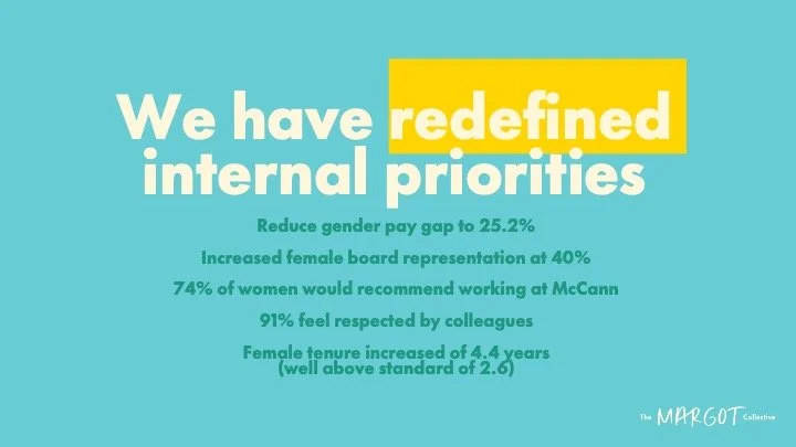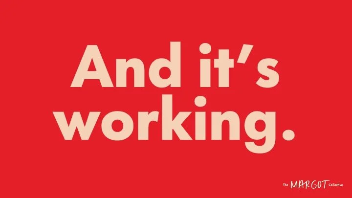 All great things start with one idea. This one was inspired by working with a female-led team for the first time in my career. Coming together virtually we were able to pool our talents and turn an idea into a decades-long initiative. I thought, why aren’t we doing this all the time? So I grabbed my co-worker and friend Lucy and we started The Margot Collective. We exist to ensure women’s voices are heard in our work and our company.
